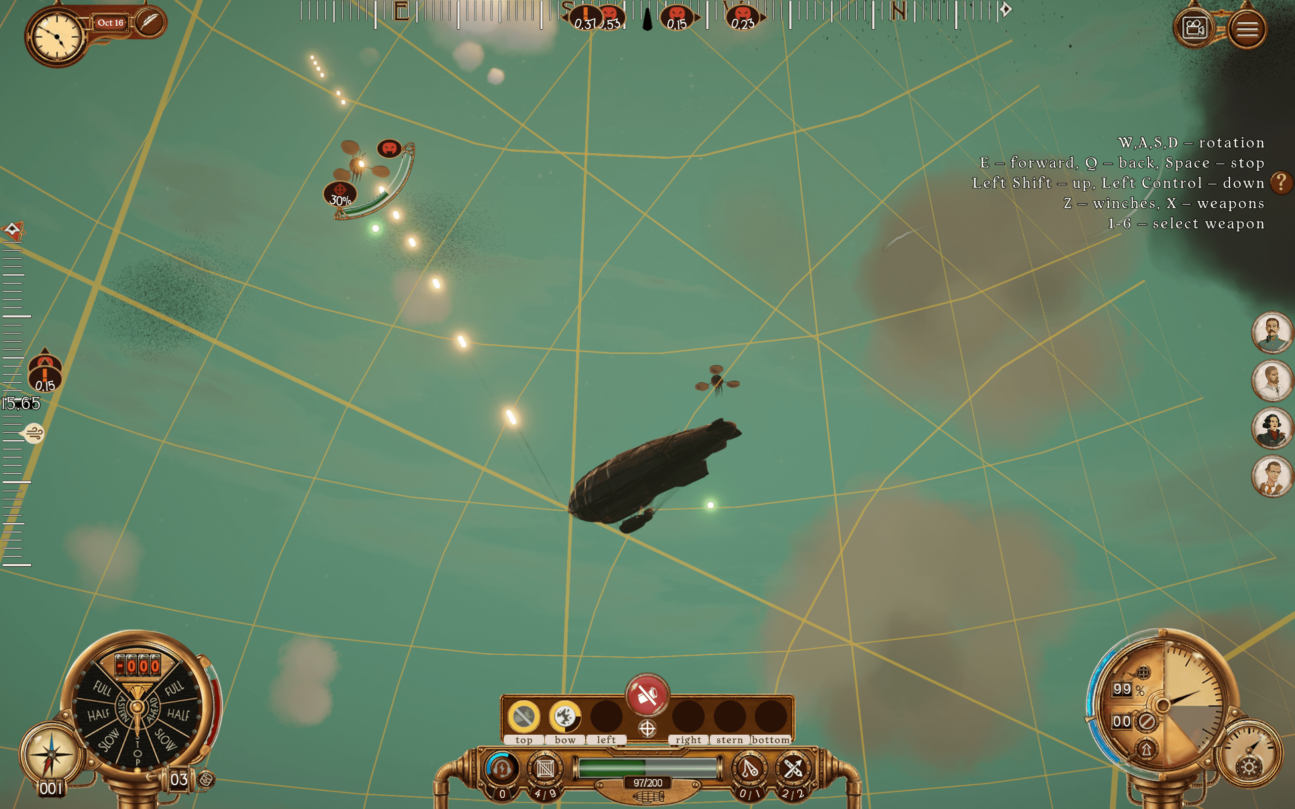 очень понравилось следить за показателями, крутая тематика “полный ход”, “одна вторая”, “три четверти”, прямо как на суднах (более или менее воздушных), балласт и газ - тоже интересная и понятная механика.